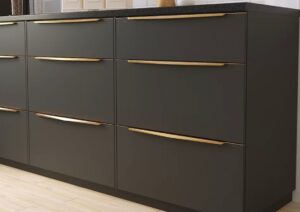 For a clean, modern, and uninterrupted look, profile handles are integrated directly into the cabinet edge. They create a sleek, linear aesthetic perfect for contemporary kitchens while remaining highly ergonomic and functional